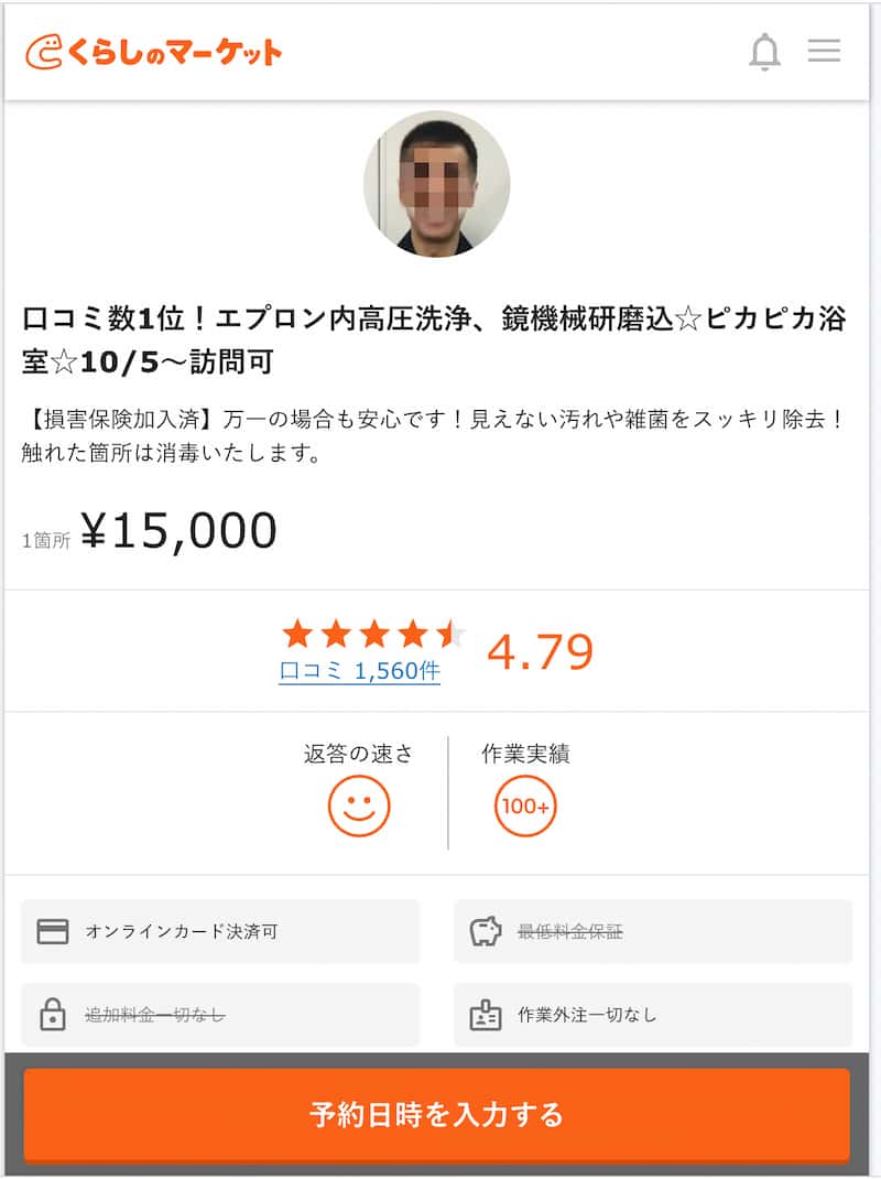 まずは、くらしのマーケットで口コミ情報や料金をチェックしてみてくださいね。