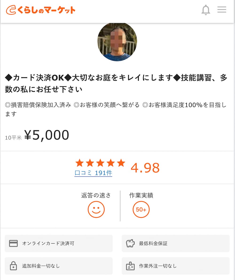 また、くらしのマーケットでサービスを利用した人だけが口コミを書けるためサクラも発生しづらい。