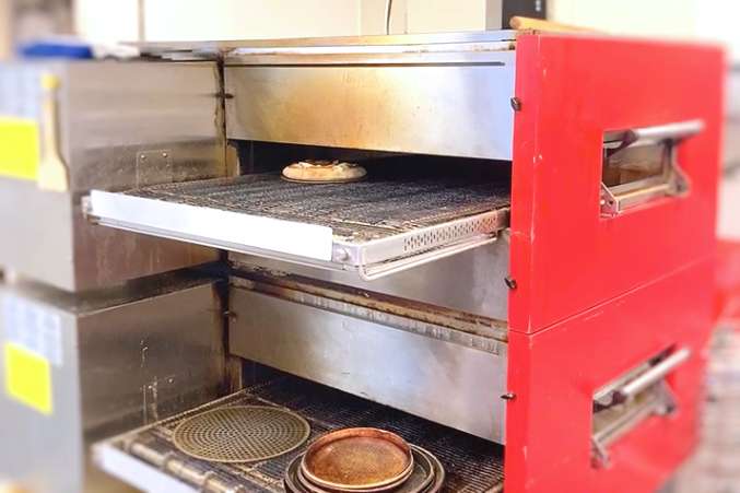 大きい業務用サイズのオーブンなので、ピザは5分もかからず数分であっという間に焼けました。