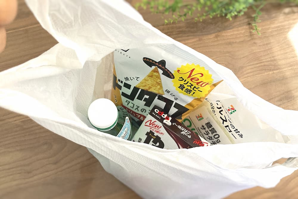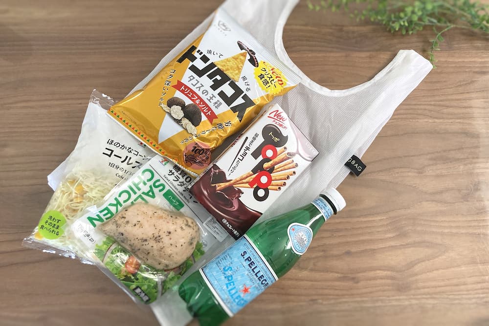 コンビニで少し多めに買ったものを入れてみました。