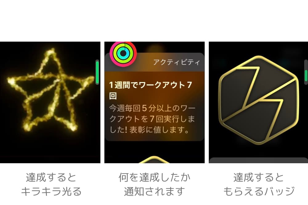 あらかじめ設定したゴール(目標の消費カロリー)に達すると赤いリングが完成します。
