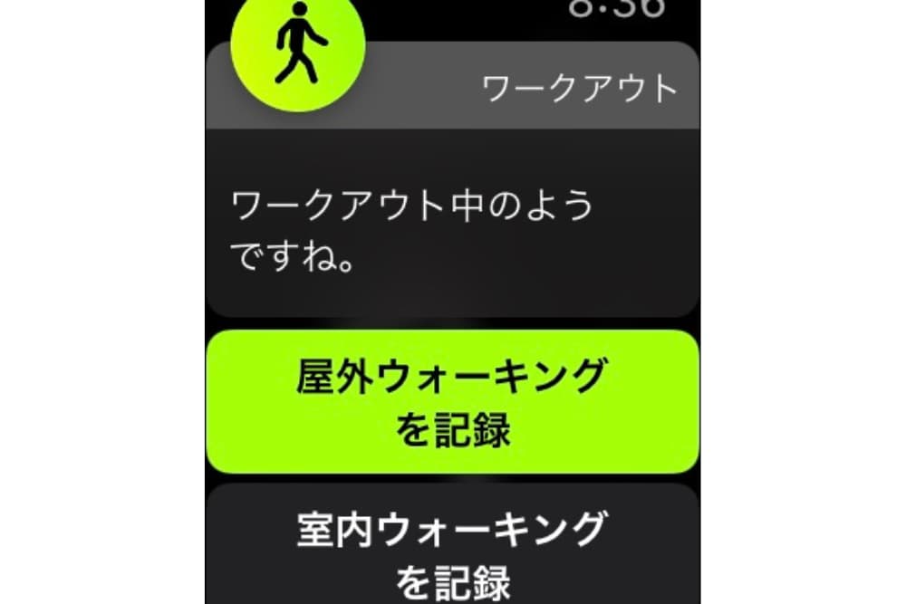 こどもの送り迎えなどで歩いている時に「ワークアウト中のようですね」と表示されて「屋外ウォーキングを記録」をタップすると計測を始めてくれる・・そんな機能です。