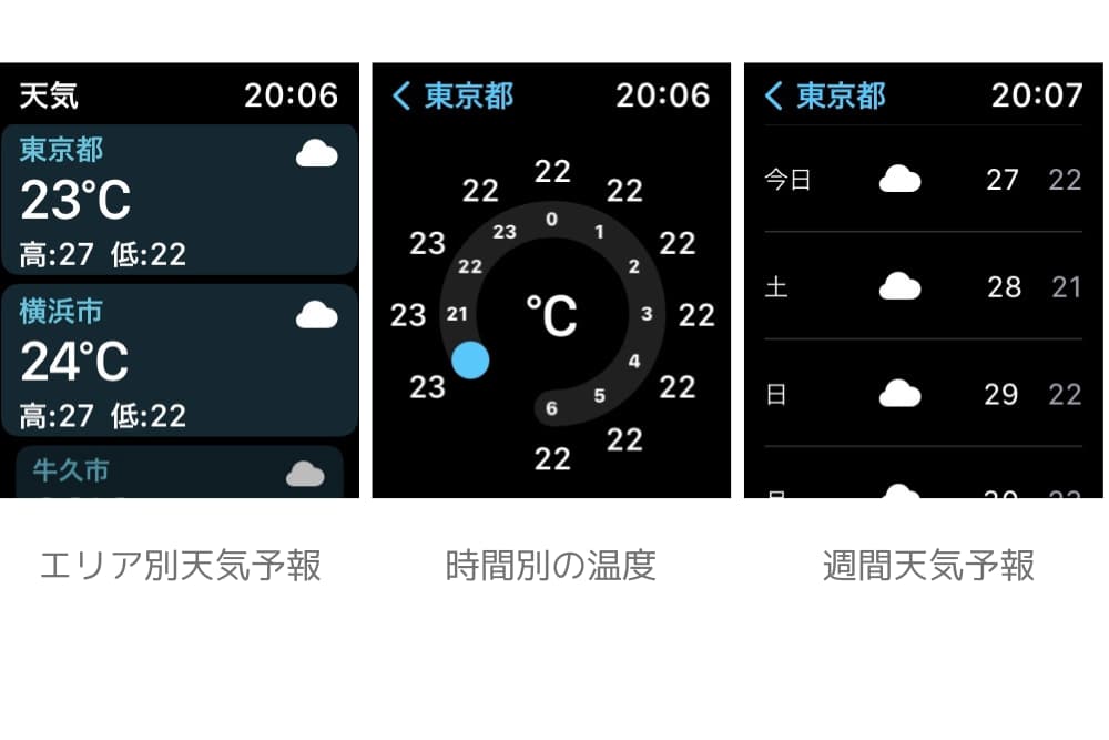 Apple Watchではお天気アプリで簡単に天気が確認できます。